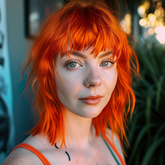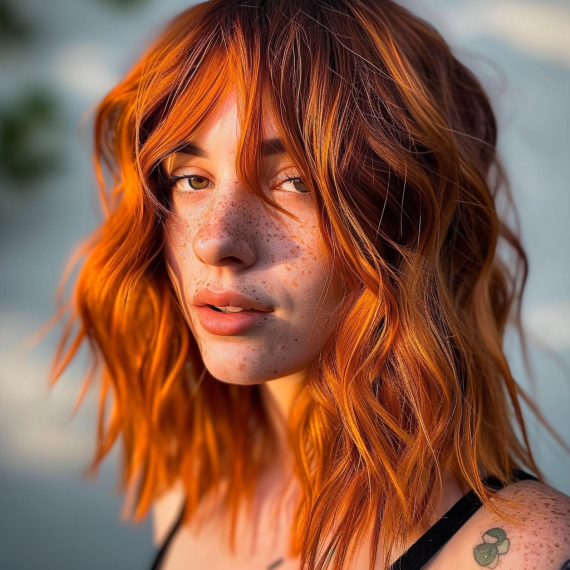 Shaggy haircuts are a flashback from the 60s, and many women are opting for this playful cut in 2024. However, you can give the standard shaggy cut a new-age makeover by dripping it in this vibrant sunkissed orange color.